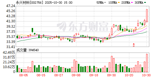 永兴材料今日涨停,全天换手率10.15%,成交额17.45亿元,振幅12.25%。龙虎榜数据显示,机构净买入5989.12万元,深股通净卖出3123.71万元,营业部席位合计净买入1.11亿元。